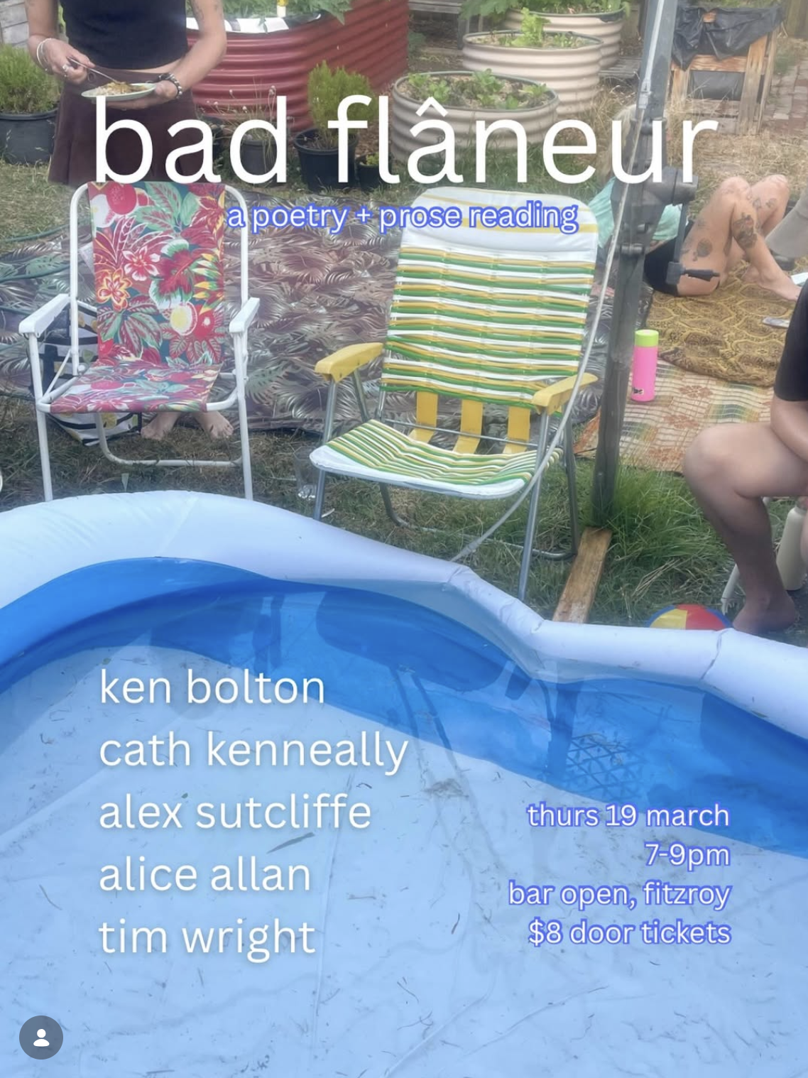 Join us on March 19 at @baropenfitzroy for a special edition bad flâneur featuring Ken Bolton and Cath Keneally from Adelaide. This will make a very rare Melbourne sighting of some of the best flâneurs in the biz. Also, remarkably, not one of our 5 readers is on instagram 😱 — true visionaries 👁️🫦👁️